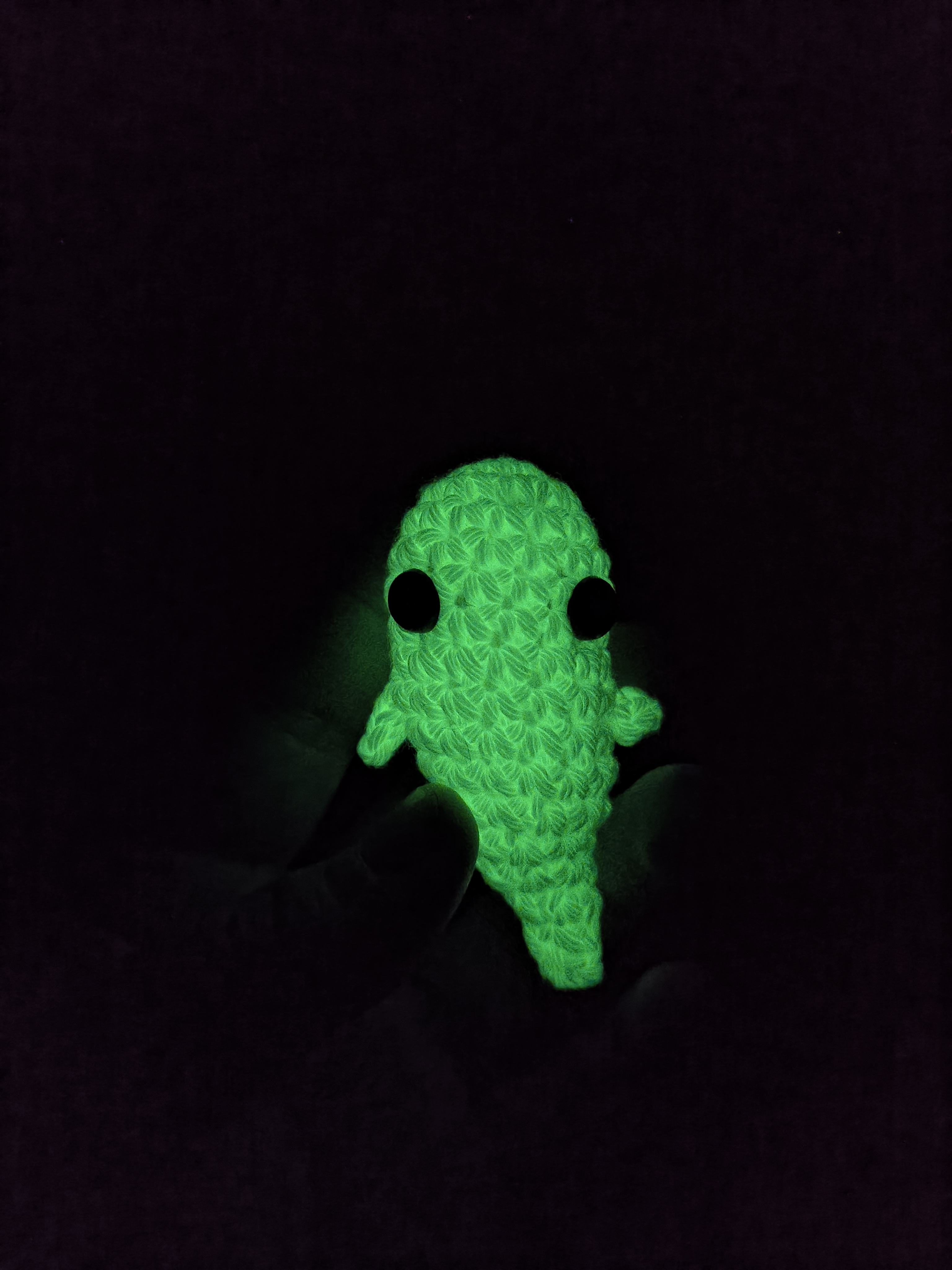 I finally decided to try glow-in-the-dark yarn, and I was impressed with how much it glowed!