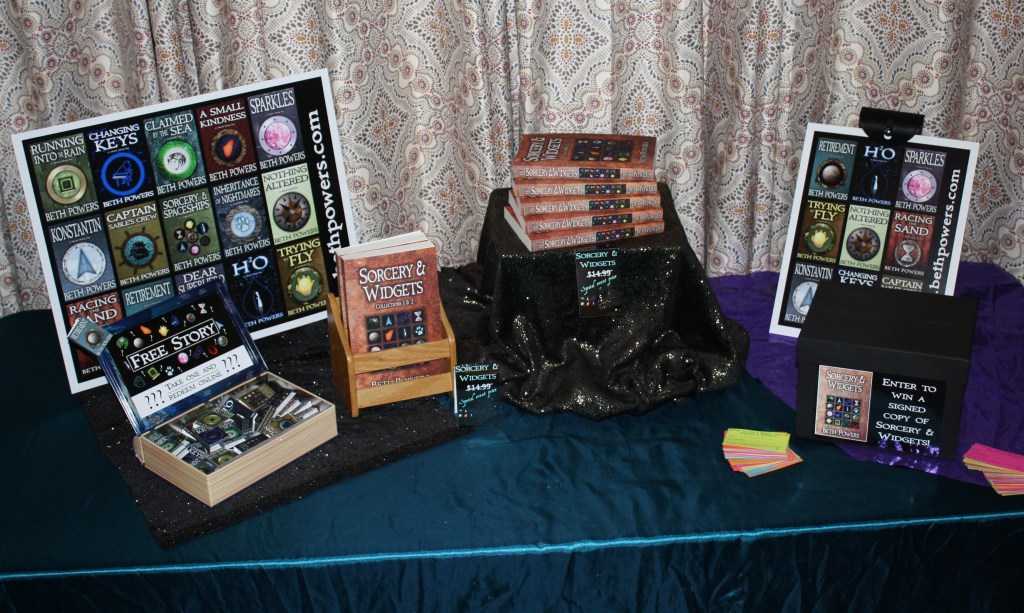 Everything is ready for my table at the ACPL Local Author Book Sale! I’ll be selling paperback copies of Sorcery & Widgets at a special event price, and I’ll be on hand throughout the event to personally sign your copy. If you’d rather leave your reading to chance, you can enter to win a signed copy of the book. I’ll also be giving out coupon codes so that you can download a free sample story from the collection–all you have to do is visit my table!