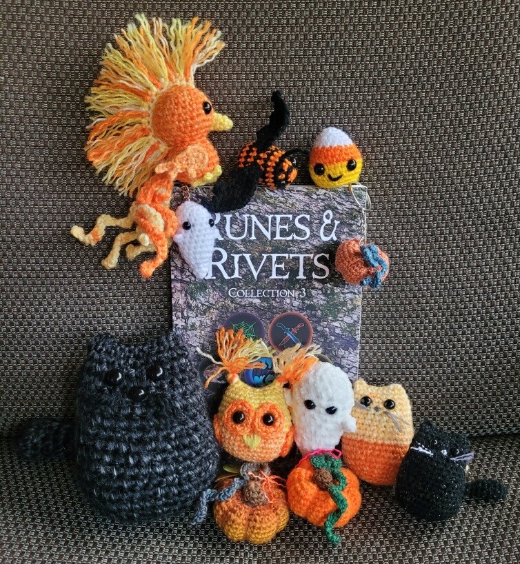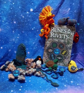 I’m working on my table set up now, but I’ll have books (including the new one!), keychains, mousepads, art prints, magnets, stickers, and of course, tiny crochet animals (more on that below). I’ll also be giving away a copy of Runes & Rivets, so be sure to stop by my table to enter to win!