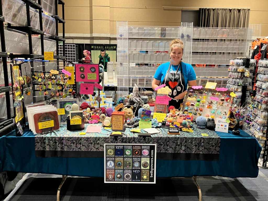 Mark your calendars and buy your tickets now! On October 28 (11am-6pm) and October 29 (11am-5pm), 2023, I’ll be at FantastiCon Fort Wayne, which takes place in the Grand Wayne Convention Center (120 W. Jefferson Avenue, Fort Wayne, Indiana, 46802). I’ll be selling my science fiction and fantasy collections at special event prices as well as art items inspired by my writing, and of course, my quotable crochet critters! I’m working on some new sci-fi/fantasy themed crochet items for this event too! There is a discount if you purchase your tickets in advance, so don’t delay, and I’m looking forward to seeing you there!