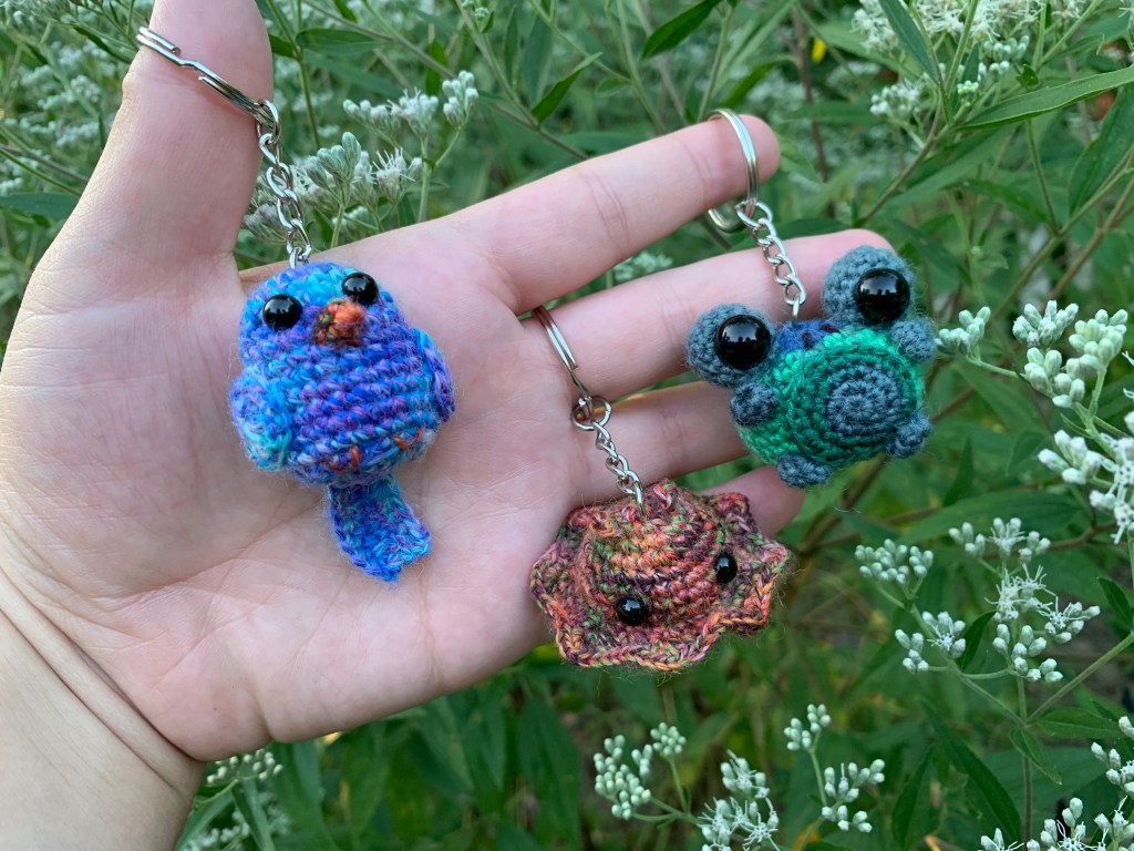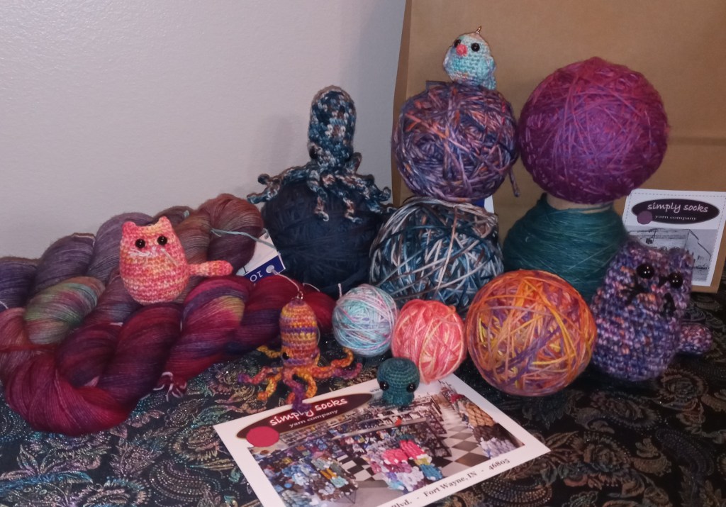 I’m a bit behind on posting, but this weekend is Tabletop Adventure Con! The event takes place at the Warsaw Community High School (1 Tiger Lane, Warsaw, Indiana 46580) on October 19-20, but I’ll only be there on Saturday (10/19) during the vendor hall hours from 10am to 6pm. You can find out more details and purchase tickets here. I’ll be selling signed copies of my short story collections, art items that use the original art from my book covers, and of course, lots of quotable critters! I’ve been crocheting keychain-sized critters lately, mostly from yarn that I buy a local yarn shop, Simply Socks. Check out the ones I made from the second month of their sock yarn club. I’ll have these and more with me this Saturday–hope to see you there!