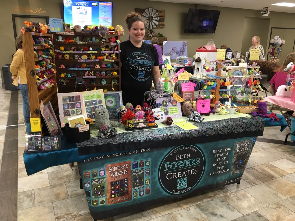 Buy your tickets now, and join the fun this Saturday at Science Central’s Sci-Fi Central event! I attended the first Sci-Fi Central in 2016 as a panelist, and this year, I’m returning as a vendor, where I’ll be selling signed copies of my books, a variety of art items, and of course, my quotable critters–including a larger variety of themed bee keychains and some critters made with new yarn!